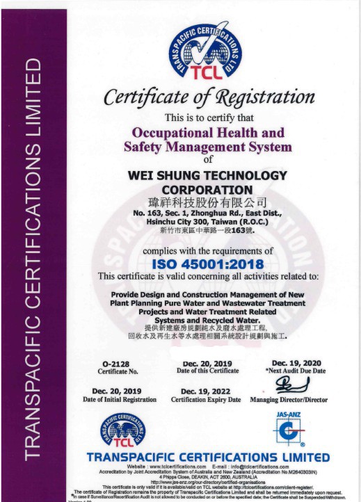 此次推動「ISO 45001:2018職業安全衛生管理系統」,由總經理 彭梓育訂定「遵守法令規章,有效預防職災,強化工安防護,降低危害風險」之安全衛生政策,經管理代表與推行委員共同規劃推動及全體員工參與,落實職業安全衛生管理制度,並由外部專業驗證機構TCL審查通過驗證。未來本公司仍將持續提升職業安全衛生文化,落實推動職業安全衛生管理,以延續企業永續經營之精神。
